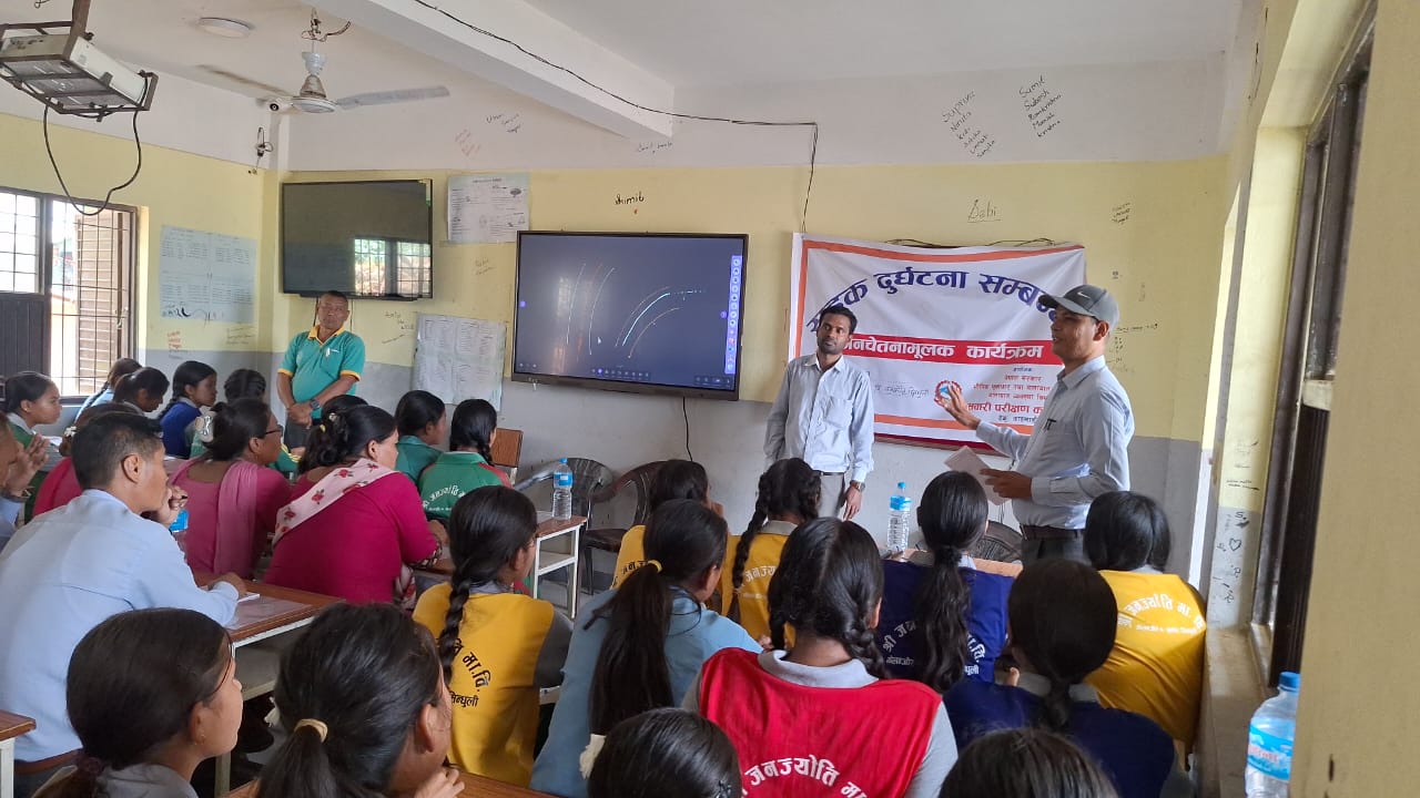 सिन्धुली जिल्लाका माध्यामिक तहका विद्यार्थीलाई सडक सुरक्षा सम्बन्धी सचेतना कार्यक्रम